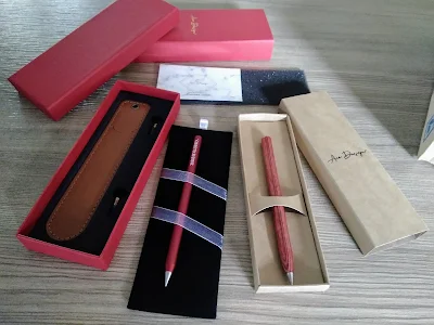 左邊紅色的是二合一金屬筆身,右邊的是原木筆身